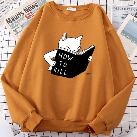 'Bad cat learning how to kill' Funny Cat Sweatshirt