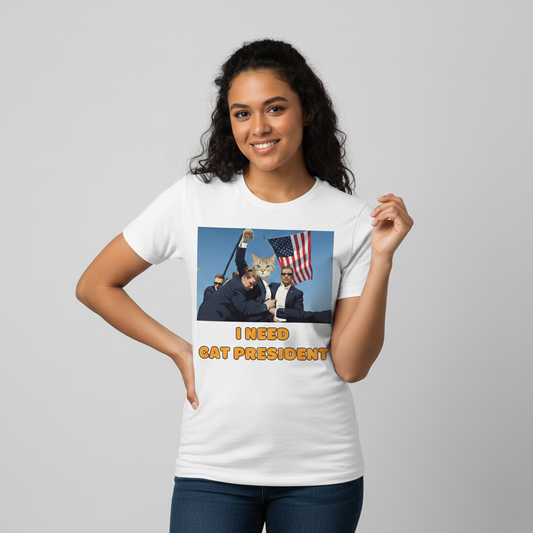 I Need Cat President! - Cartoon Cat T-shirt Inspired By Rally Accident