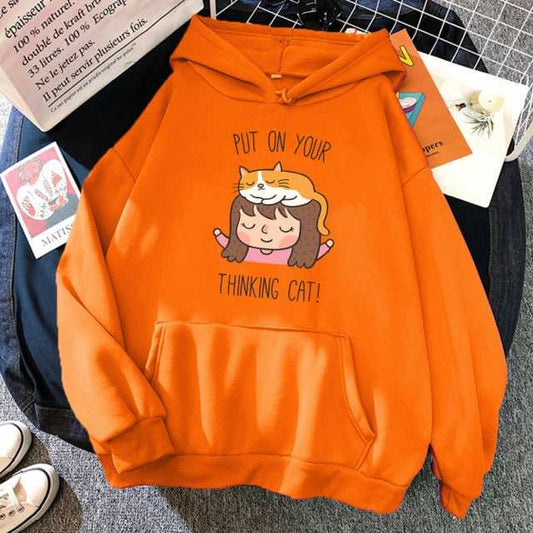 "Put On Your Thinking Cat" Adorable Cartoon Hoodie