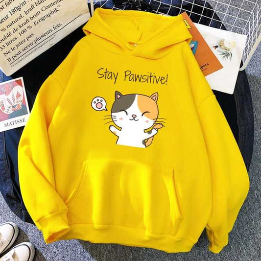 "Stay Pawsitive!" Cute Cartoon Cat Hoodie