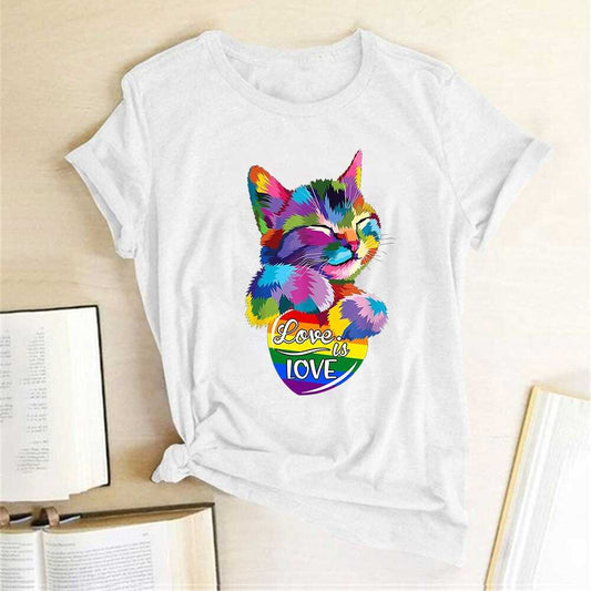 'Love Is Love' Colorful Rainbow Cat T-Shirt