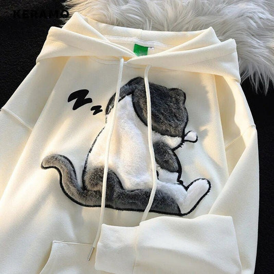 Back Side View Of Fluffy Sleeping Cute Cat Hoodie