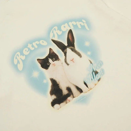 Beige Retro Y2K Rabbit And Cat T Shirt