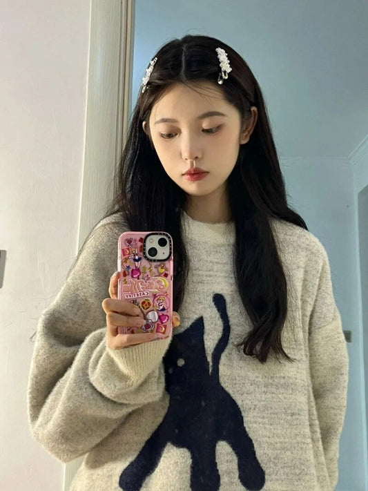 Minimalistic Knitted Harajuku Style Black Cat Sweatshirt