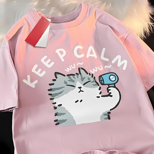 'The Keep Calm Cat' - Summer T-shirt With Cute Cat