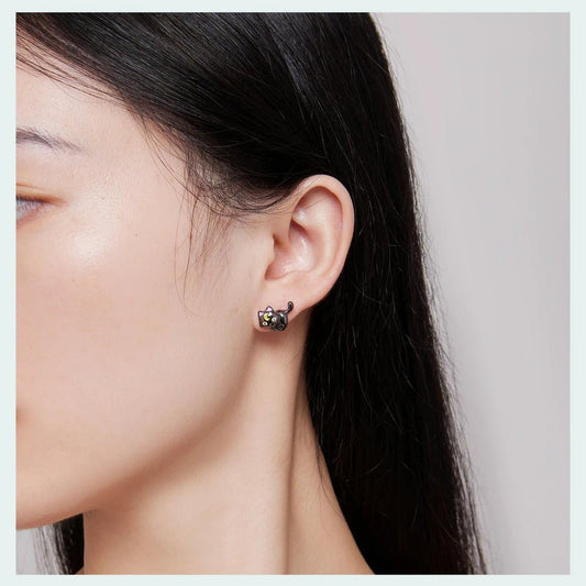 925 Sterling Silver Black Moon Cat Earrings With Zircon