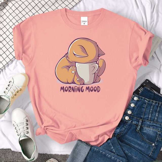 ‘SLEEPY MORNING' ADORABLE CAT T-SHIRT