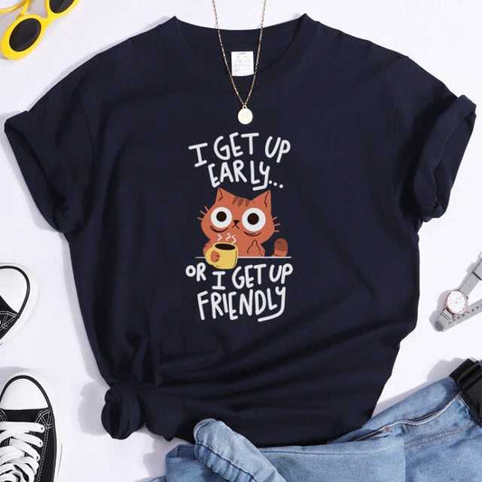 I Get Up Are Lazy Cute Cat Women T-shirts