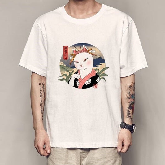 Kawaii Geisha Ronin Cat Cotton T-shirt