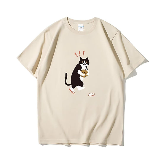 'Sneaky Cat Stealing Cookie' Cotton T-shirt