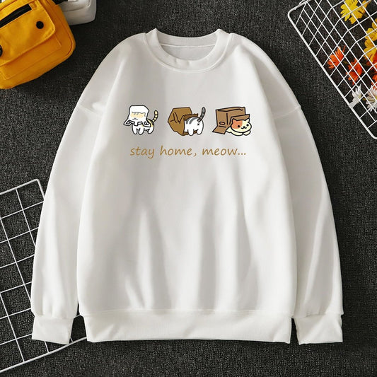 'Stay home meow' unisex kawaii cartoon sweatshirt